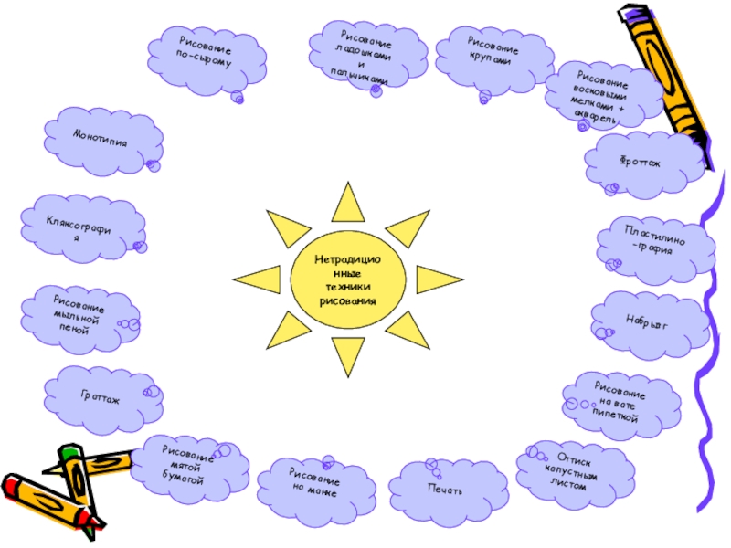 восковыми мелками + акварель