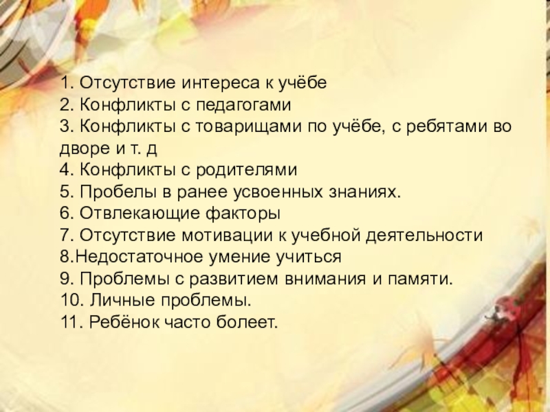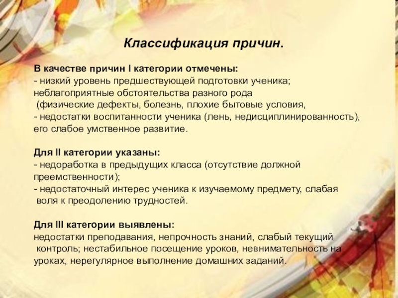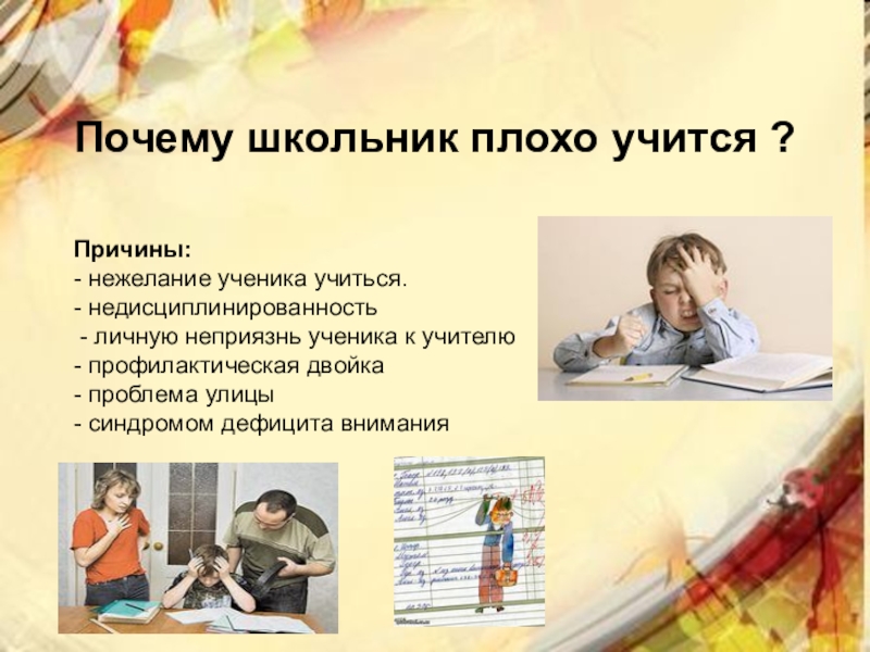 - недостатки воспитанности ученика (лень, недисциплинированность),