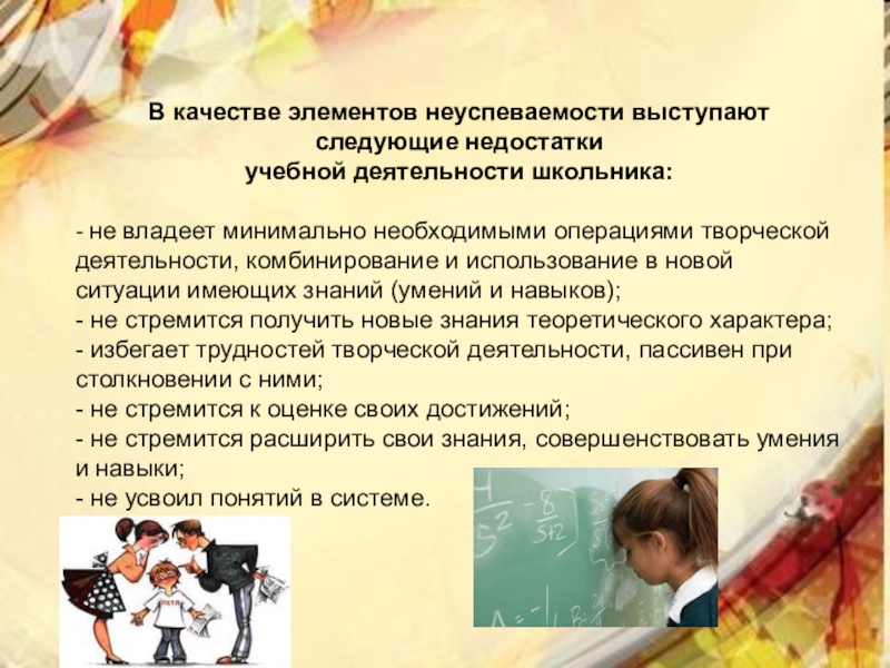 В качестве элементов неуспеваемости выступают следующие недостатки