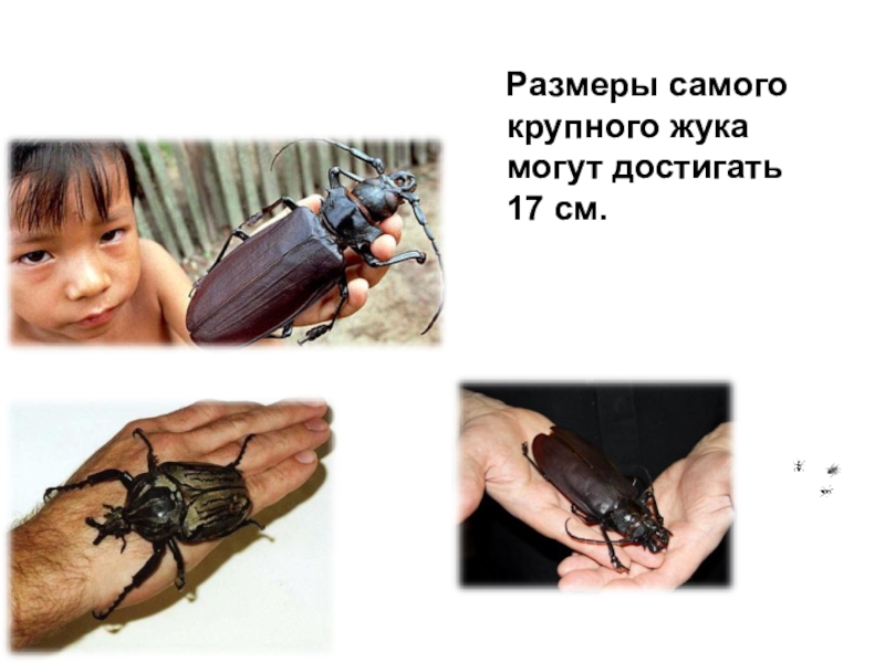 Слайд 8 Размеры самого крупного жука могут достигать 17 см.