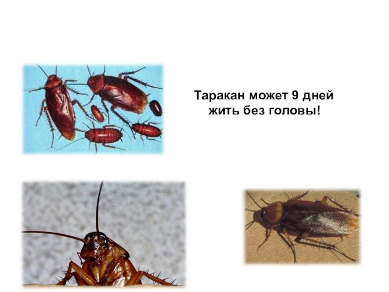Слайд 4Таракан может 9 дней жить без головы!