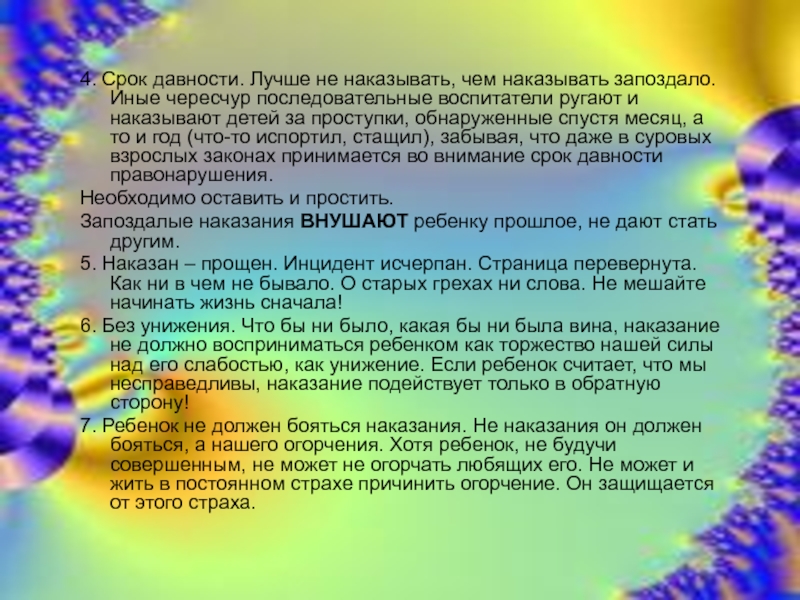 Запоздалые наказания ВНУШАЮТ ребенку прошлое, не дают стать другим.