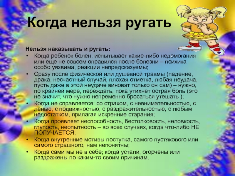 Слайд 14Наказывая своих детей, прежде всего, подумайте:
