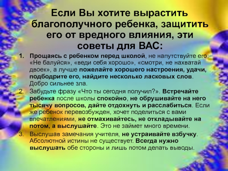 Слайд 12 Если Вы хотите вырастить благополучного ребенка, защитить его от