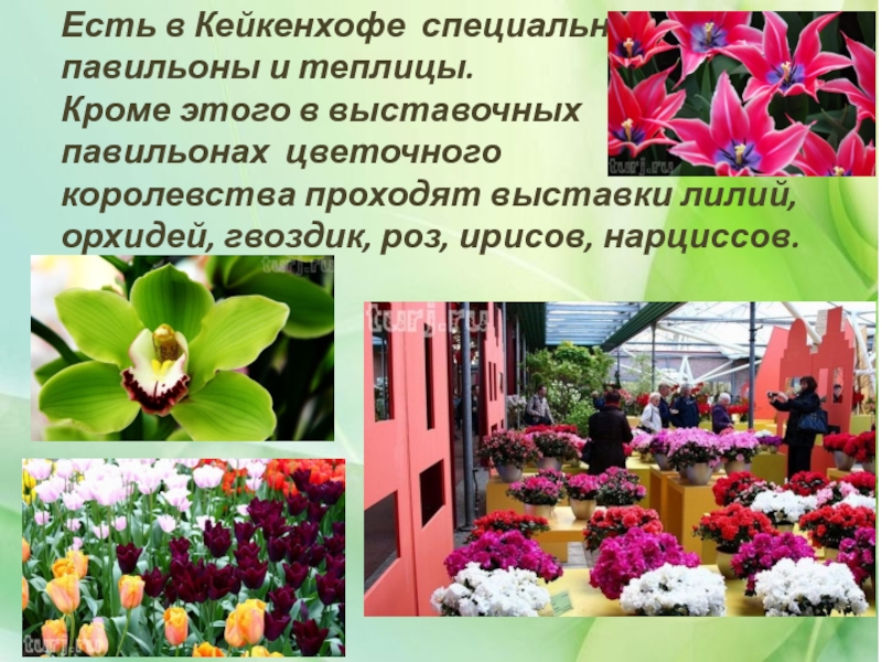 Слайд 11Есть в Кейкенхофе специальные павильоны и теплицы. Кроме этого в выставочных