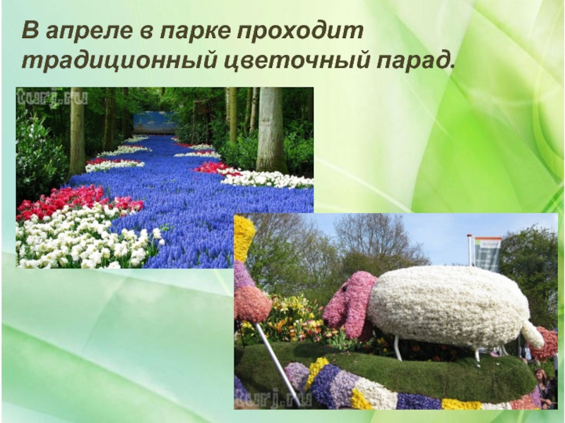 Слайд 12В апреле в парке проходит традиционный цветочный парад.