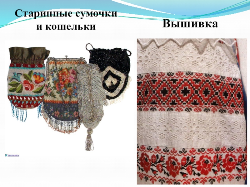 Слайд 13Старинные сумочки и кошельки