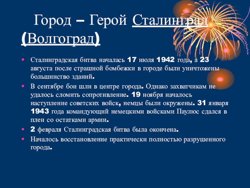 Слайд 23 Город – Герой Сталинград (Волгоград)