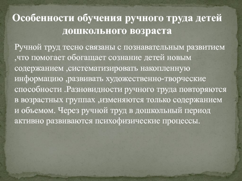 Особенности обучения ручного труда детей дошкольного возраста