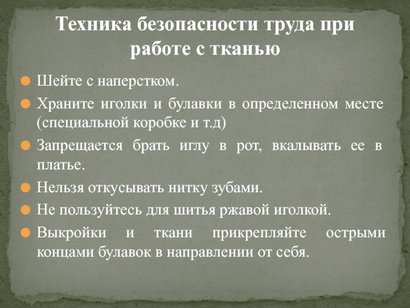 Техника безопасности труда при работе с тканью