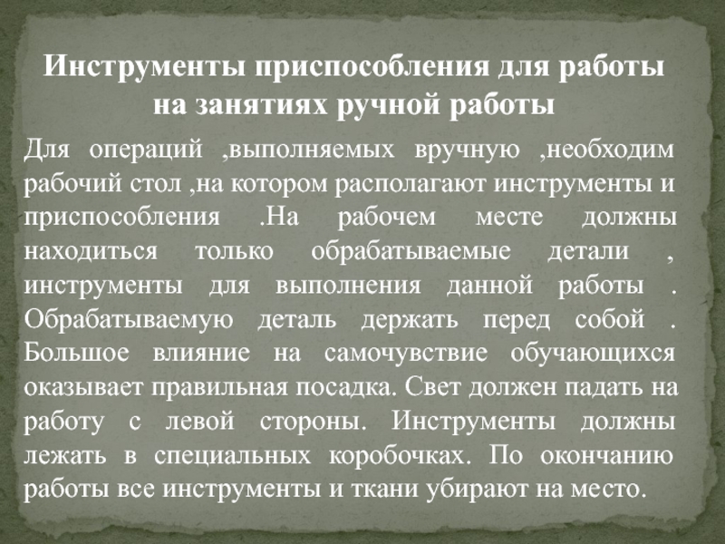 Инструменты приспособления для работы на занятиях ручной работы