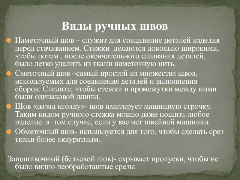 Виды ручных швов