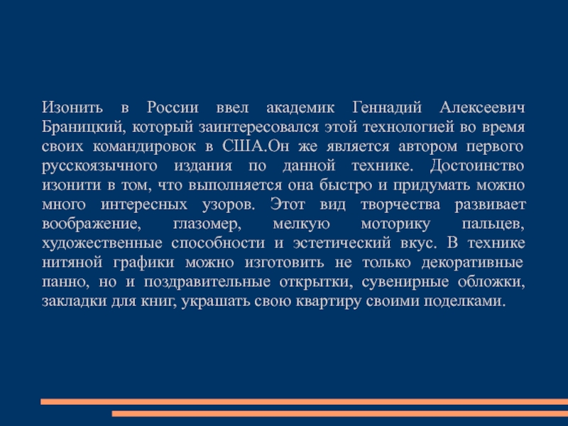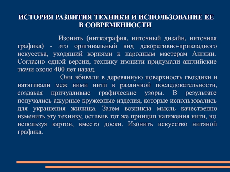 РАЗВИТИЯ ТЕХНИКИ «ИЗОНИТЬ»