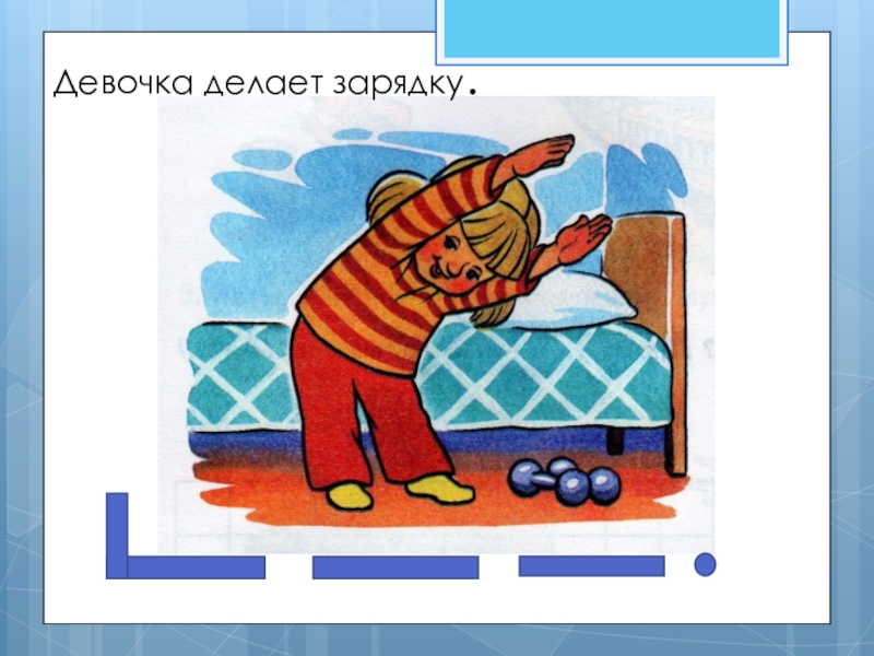 Слайд 21Девочка делает зарядку.