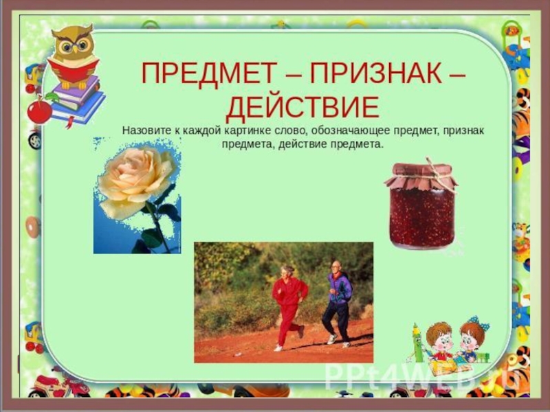 Слайд 1Слова – предметы, действия, признаки. Схема предложения