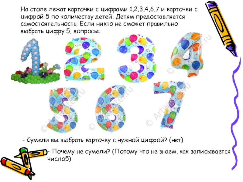 - Почему не сумели? (Потому что не знаем, как записывается число5)