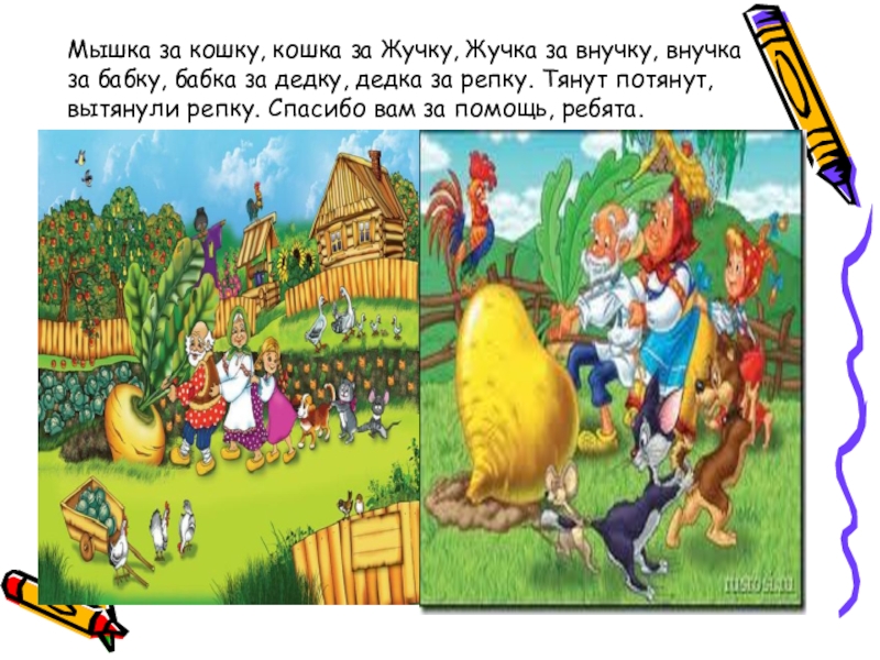- Молодцы, ребята! Пойду помогу репку тянуть.