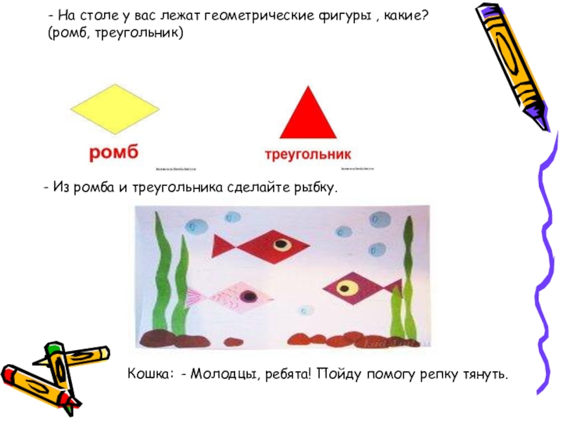 - Из ромба и треугольника сделайте рыбку.