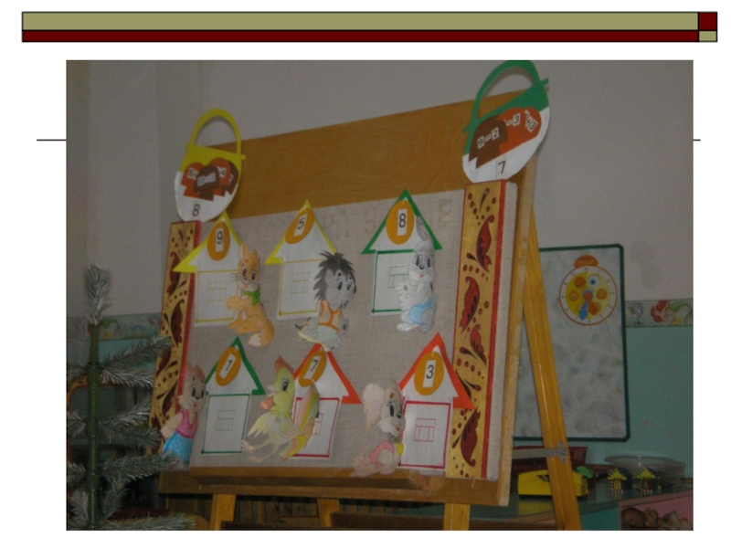 (на доске 6 домиков с цифрами на крыше:3,5,9,1,7,8.)