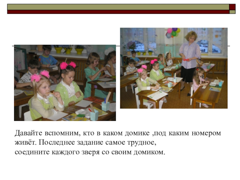 Слайд 15Давайте вспомним, кто в каком домике ,под каким номером живёт. Последнее