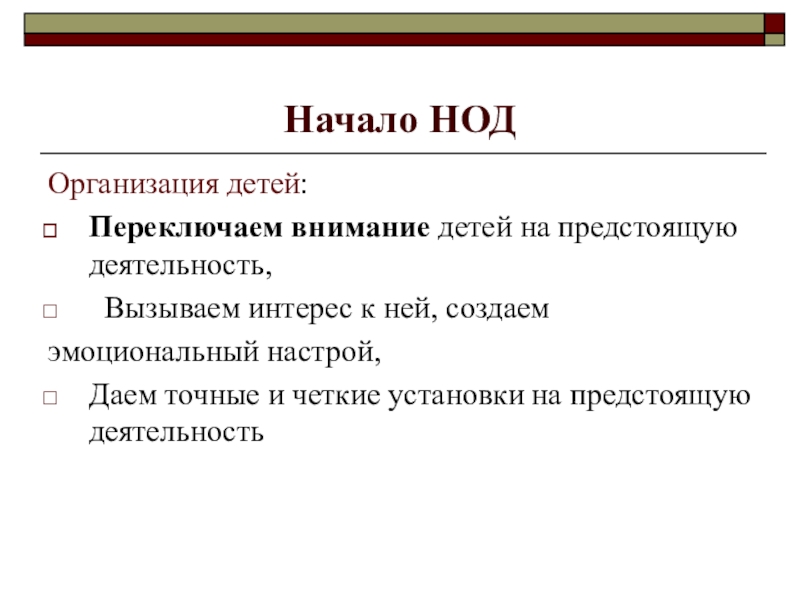 Слайд 5Начало НОД
