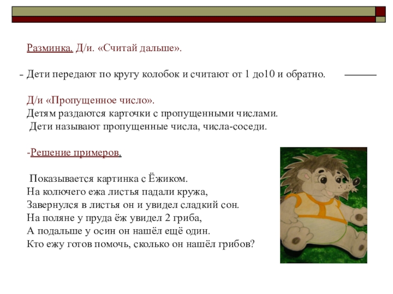 Слайд 8Разминка. Д/и. «Считай дальше».
