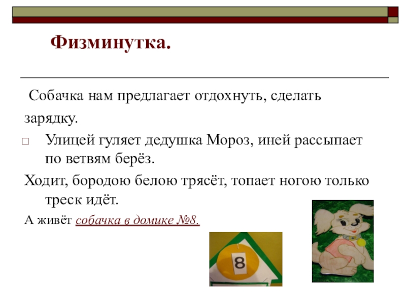 Слайд 14 Собачка нам предлагает отдохнуть, сделать
