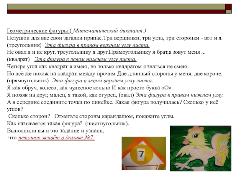 Слайд 13Геометрические фигуры.( Математический диктант.)