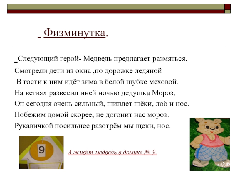 Слайд 11 Следующий герой- Медведь предлагает размяться.