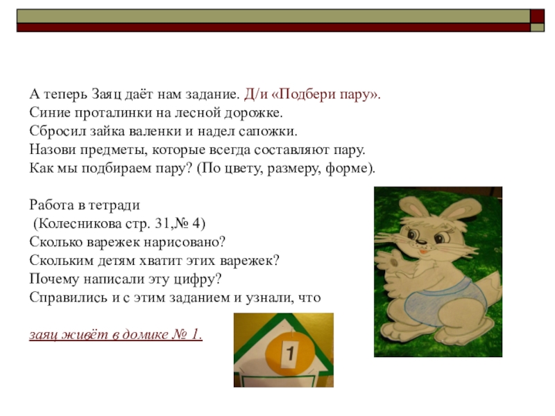 Слайд 12А теперь Заяц даёт нам задание. Д/и «Подбери пару».