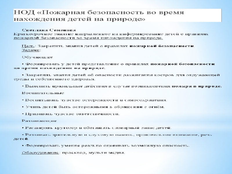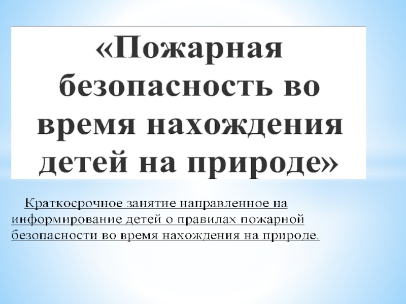 Презентация, доклад на тему НОД Пожарная безопасность во время нахождения детей на природе