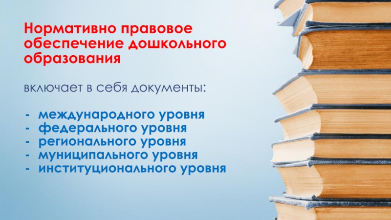 Слайд 3Нормативно правовое обеспечение дошкольного образования