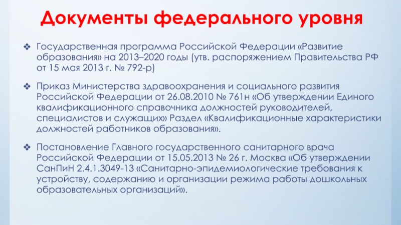 Слайд 10Документы федерального уровня