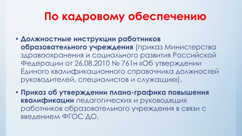 Слайд 17По кадровому обеспечению
