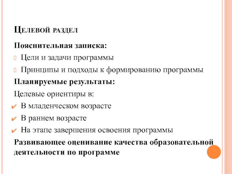 для достижения целей Программы, планируемых результатов ее освоения в виде целевых ориентиров, а также особенности организации образовательной деятельности.