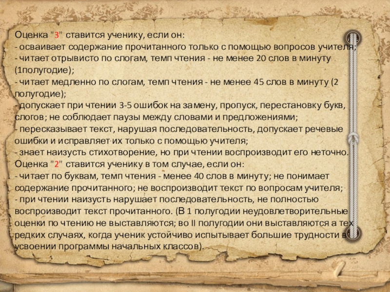 Оценка “2″ ставится ученику, если он обнаруживает незнание большей части программного материала, не справляется с выполнением практических работ даже с помощью учителя