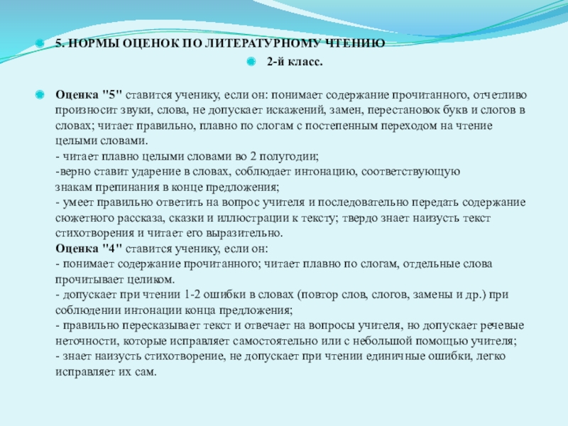 Слайд 105. НОРМЫ ОЦЕНОК ПО ЛИТЕРАТУРНОМУ ЧТЕНИЮ