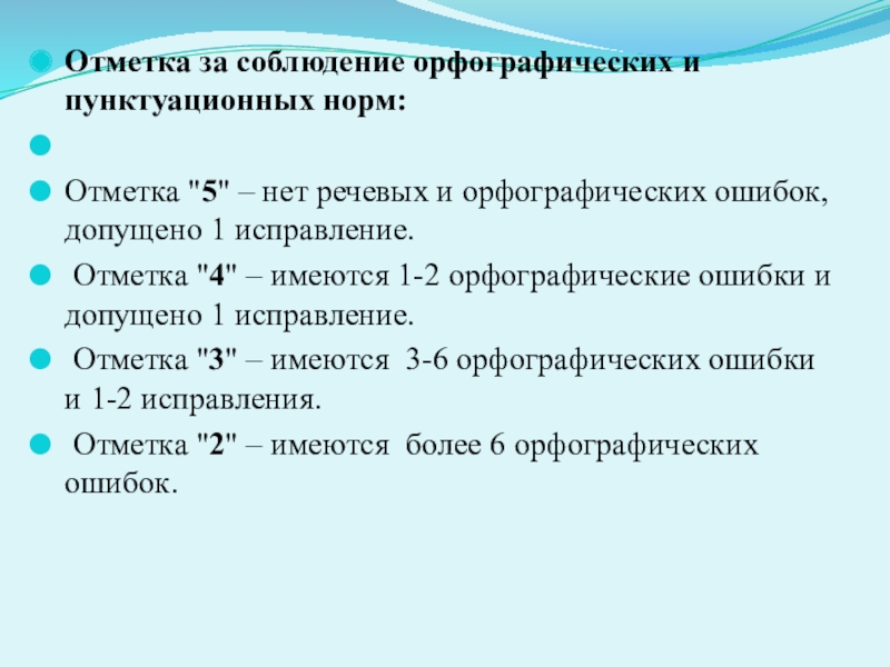 Слайд 8Отметка за соблюдение орфографических и пунктуационных норм:
