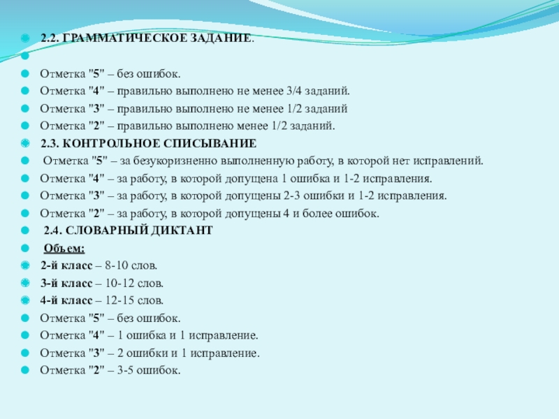 Отметка "2" – 2 и более грубых ошибки.
