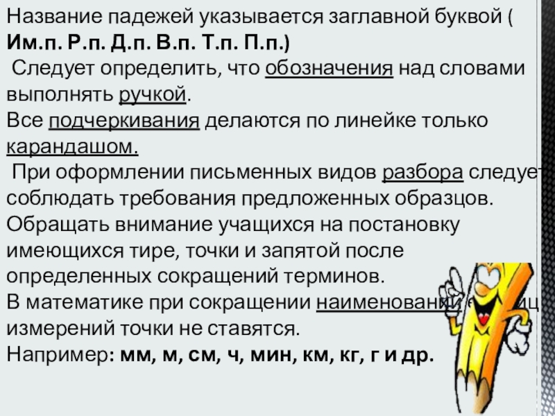 Слайд 27Название падежей указывается заглавной буквой ( Им.п. Р.п. Д.п. В.п. Т.п.