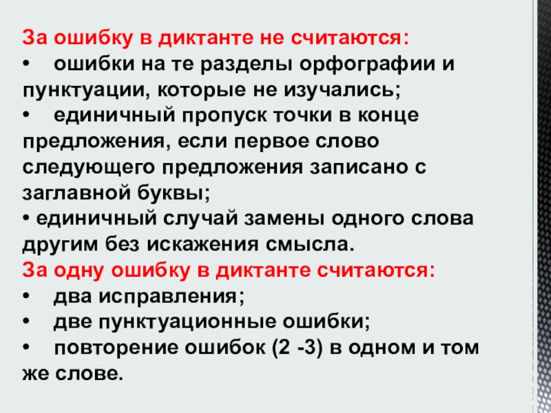 Слайд 10За грамматические ошибки, допущенные в работе по математике, оценка не снижается.