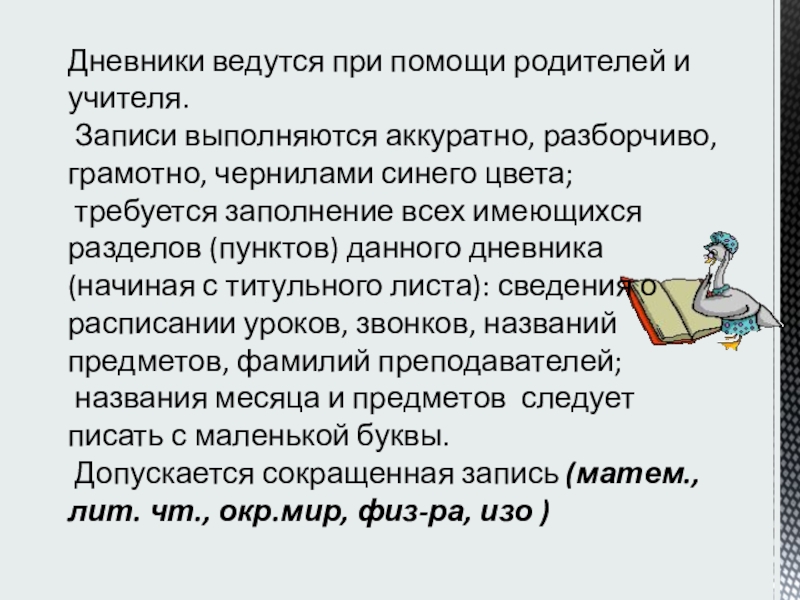 Слайд 33Дневники ведутся при помощи родителей и учителя.