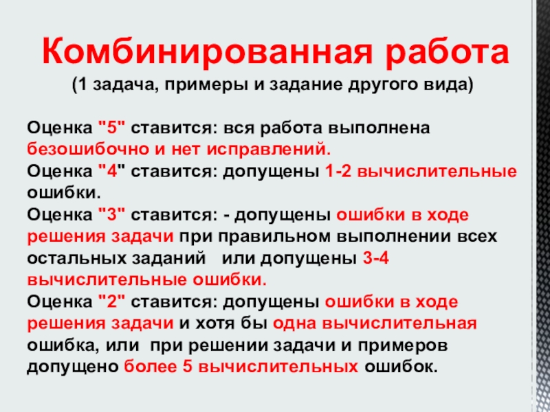 Оценка "2" ставится: допущены 5 и более вычислительных ошибок.