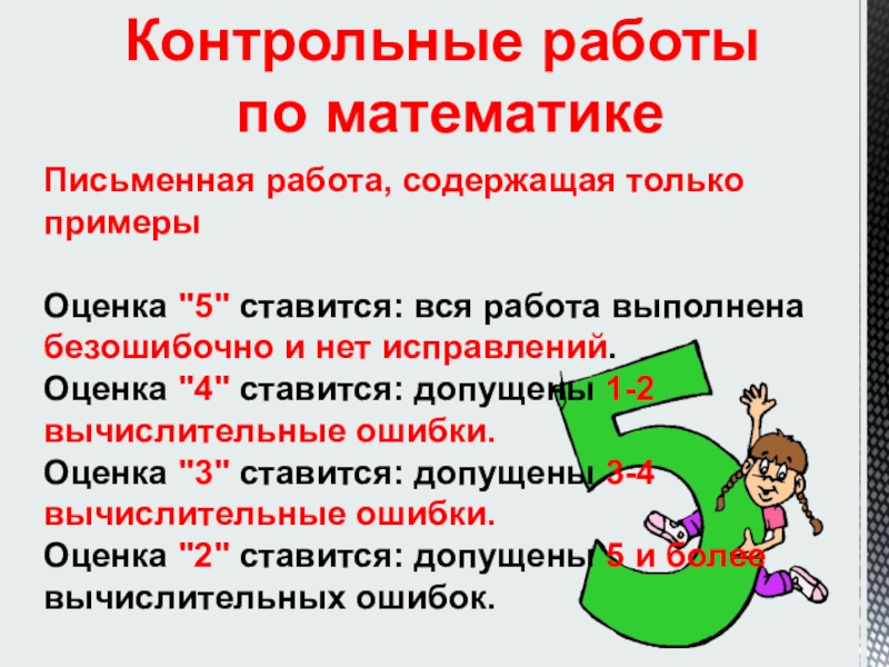 Слайд 5«5» - ставится за безошибочное аккуратное выполнение работы;