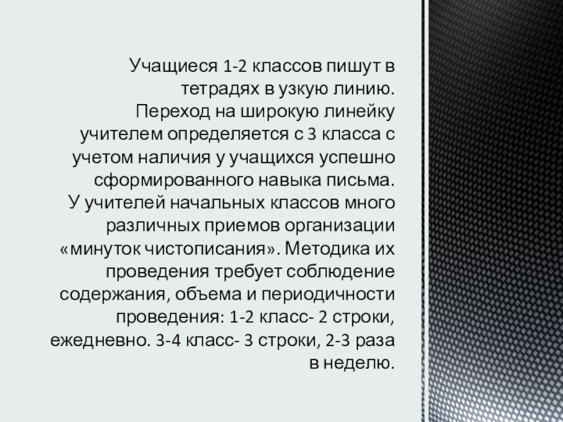 Слайд 25Учащиеся 1-2 классов пишут в тетрадях в узкую линию.
