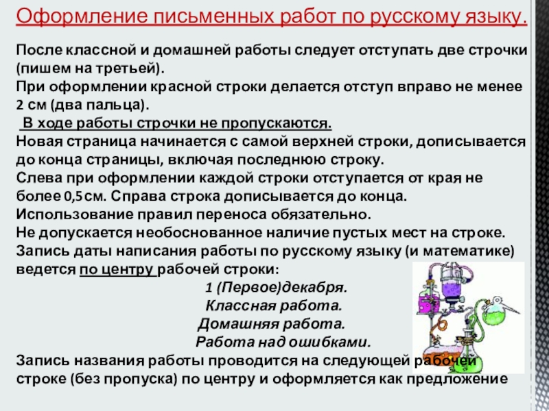 небрежно оформленную работу, несоблюдение правил и каллиграфии оценка снижается на один балл!