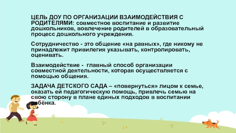 стиль общения воспитателя с родителями воспитанников, позволяющий включаться в жизнь группы;