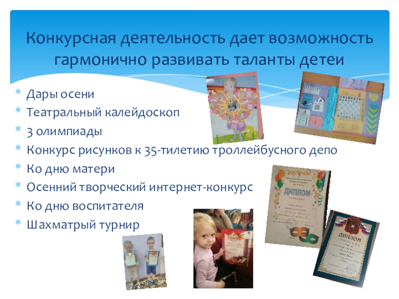 Конкурсная деятельность дает возможность гармонично развивать таланты детеи