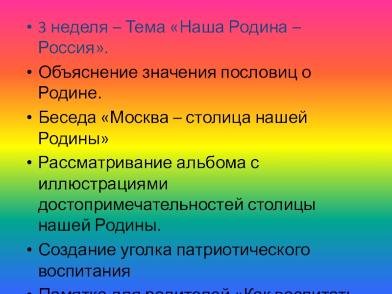 Слайд 113 неделя – Тема «Наша Родина – Россия».
