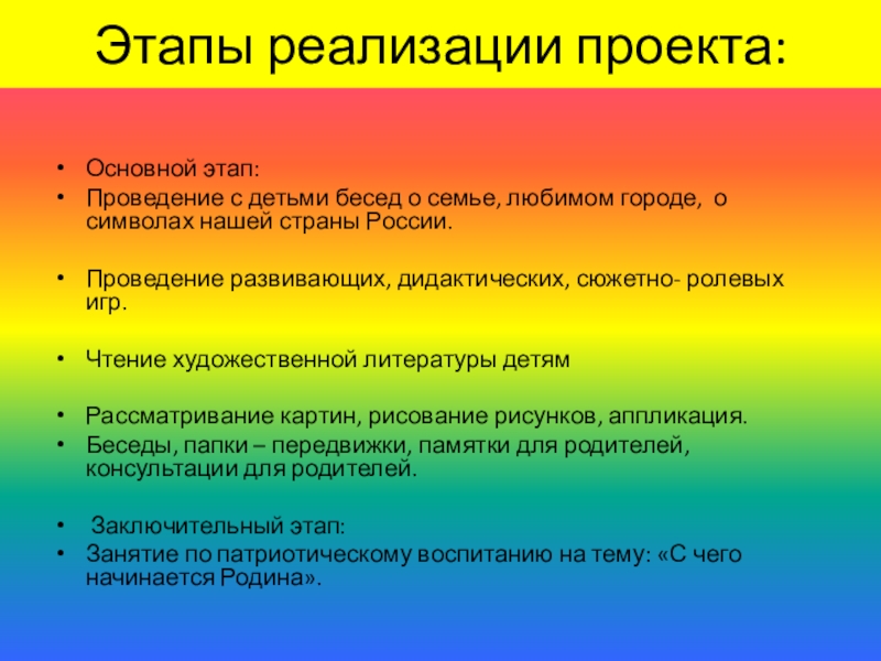 и отец, родители, те, кто дает жизнь новому существу. Воспитание чувства патриотизма у дошкольников – процесс сложный и длительный. Любовь к близким людям, к детскому саду, к родному посёлку и родной стране играют огромную роль в становлении личности ребенка.